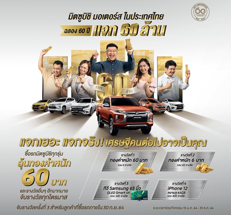 มิตซูบิชิ มอเตอร์ส ในประเทศไทย ฉลอง 60 ปี แจก 60 ล้าน แจกเยอะ แจกจริง เศรษฐีคนต่อไปอาจเป็นคุณ