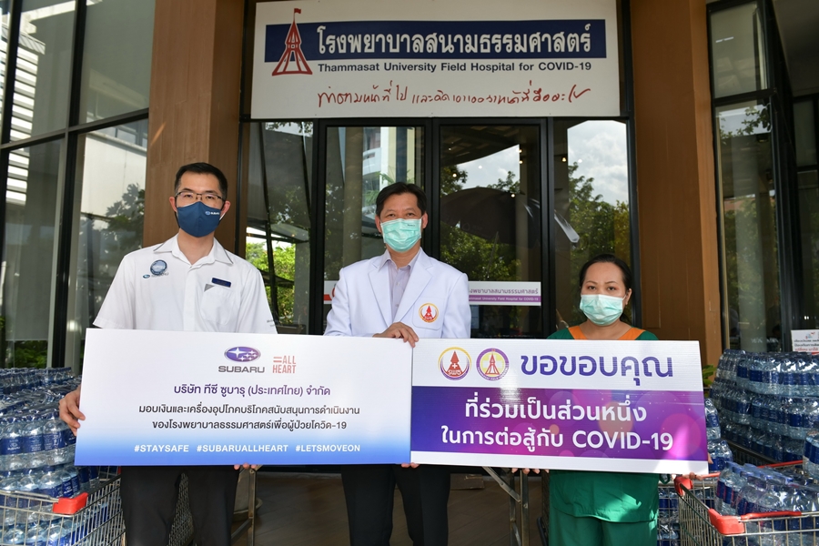 บริษัท ทีซี ซูบารุ (ประเทศไทย) จำกัด เป็นตัวแทนครอบครัวซูบารุมอบเงินจากกิจกรรม #STAYSAFE เพื่อเป็นกำลังใจและสนับสนุนการทำงานของบุคลากรทางการแพทย์ โดยกิจกรรม #STAYSAFE เป็นกิจกรรมออนไลน์ที่เปิดโอกาสให้คนไทยได้ส่งกำลังใจผ่านข้อความแคปชั่นและกรอบรูปเฟซบุ๊คในระหว่างวันที่ 13 พฤษภาคม – 25 มิถุนายน ที่ผ่านมา และได้รับเสียงตอบรับอย่างล้นหลามทำให้สามารถ รวบรวมเงินบริจาคสูงสุด 70,000 บาท ในการสนับสนุนการทำงานของแพทย์และบุคลากรทางการแพทย์ของโรงพยาบาลธรรมศาตร์ที่ยังคงดูแลผู้ป่วยโควิด-19 อย่างต่อเนื่อง