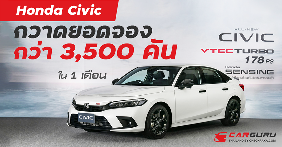 ฮอนด้า ซีวิค ใหม่ เจเนอเรชันที่ 11 กวาดยอดจองทั่วประเทศกว่า 3,500 คัน หลังเปิดตัวเพียง 1 เดือน คาดครองอันดับหนึ่งเซกเมนต์คอมแพคท์ซีดานต่อเนื่องอีกปี