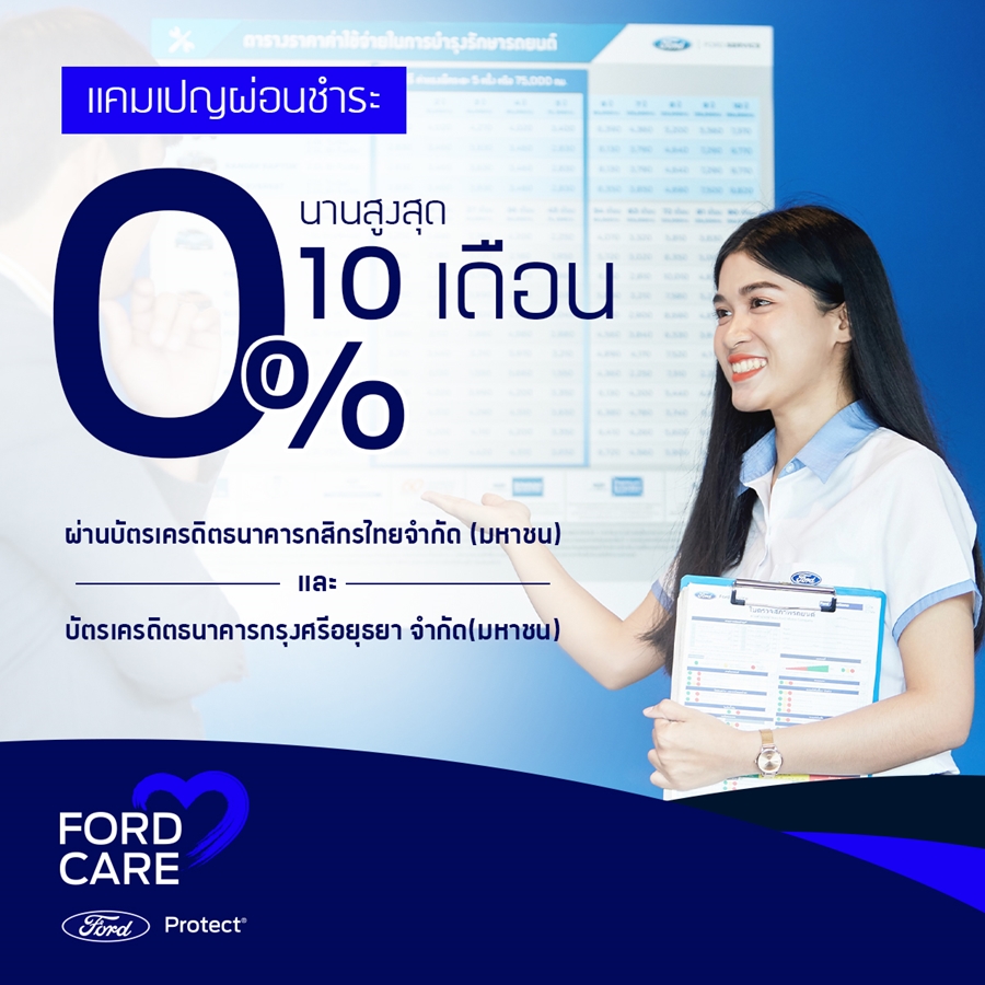ฟอร์ด มอบความอุ่นใจด้วย FORD CARE โปรแกรมแพ็กเกจขยายรับประกันที่หลากหลายพร้อมสิทธิประโยชน์พิเศษสำหรับสมาชิก