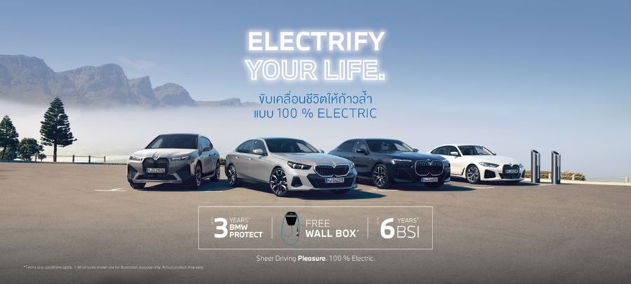 สัมผัสสุนทรียภาพแห่งอนาคตไปกับรถยนต์ไฟฟ้าหลากหลายรุ่นจาก BMW ที่พร้อมมอบประสบการณ์ในการขับขี่เหนือระดับ ขับเคลื่อนชีวิตให้พุ่งทะยานไปข้างหน้าแบบ 100% ELECTRIC ขุมพลังแรงเต็มร้อยที่มาพร้อมความยั่งยืน ให้คุณไว้วางใจได้ตลอดเวลาด้วยมาตรฐานการดูแลจาก BMW Service Inclusive (BSI) และ Warranty ที่ให้คุณใช้รถโดยปราศจากความกังวล