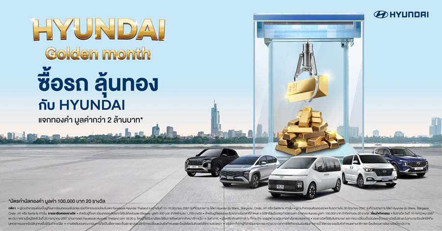 Hyundai Golden Month แจกรางวัลกว่า 2 ล้านบาท เพียงทดลองขับรับคูปองส่วนลดและลุ้นรับทองเมื่อออกรถฮุนได
