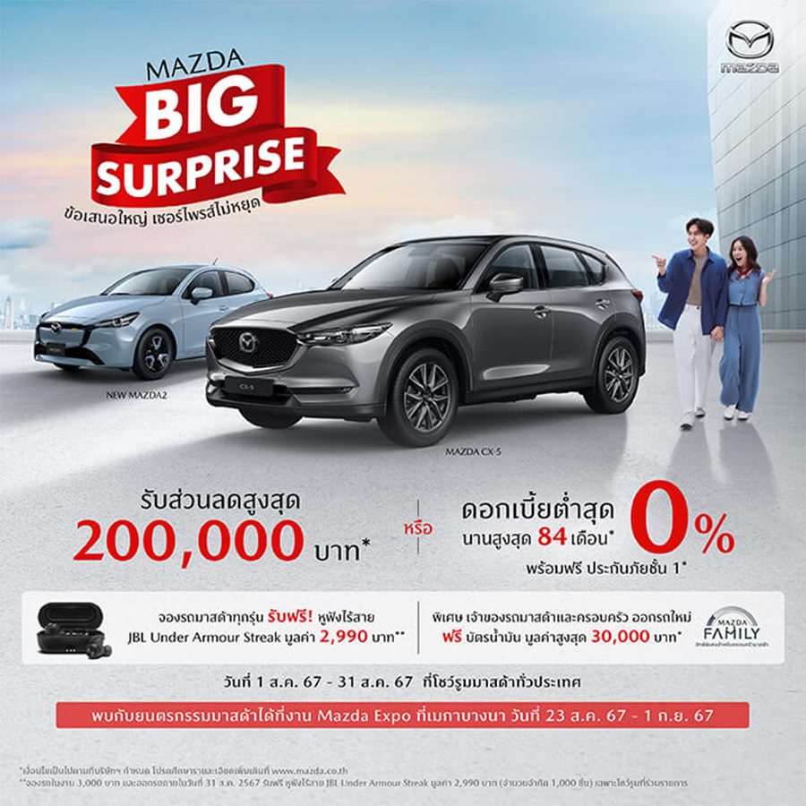 เซอร์ไพรส์ยิ่งขึ้น เมื่อจองรถมาสด้าทุกรุ่น และออกรถภายในวันที่ 31 ส.ค. 67