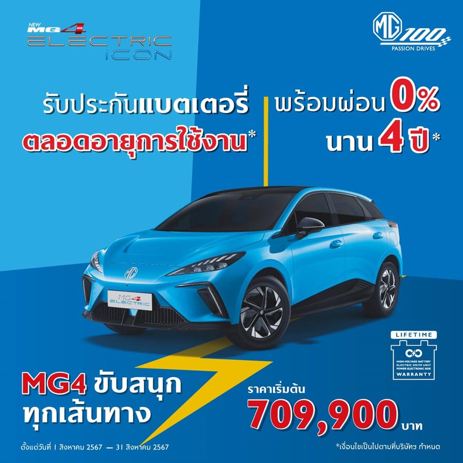 - เงื่อนไขทั้งหมดสำหรับลูกค้าที่จองตั้งแต่วันที่ 1 สิงหาคม 2567 ถึง 31 สิงหาคม 2567 และรับรถยนต์กับผู้จำหน่ายรถยนต์เอ็มจีอย่างเป็นทางการทุกแห่งทั่วประเทศภายในวันที่ 31 สิงหาคม 2567 เท่านั้น