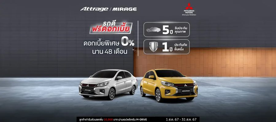Attrage และ Mirage ดอกเบี้ยพิเศษ 0% สำหรับดาวน์ 25% และผ่อน 48 เดือน