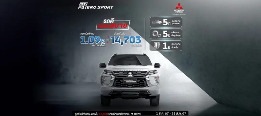 สำหรับลูกค้าที่ซื้อรถยนต์มิตซูบิชิ ปาเจโร สปอร์ต อีลีท เอดิชัน และปาเจโร สปอร์ต ระหว่างวันที่ วันที่ 1 สิงหาคม พ.ศ. 2567 – 31 สิงหาคม พ.ศ. 2567