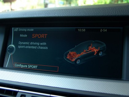 รถ BMW คือยนตรกรรมที่สื่อสารกับคนขับได้อย่างหมดจด โหมดของการขับขี่บ่งบอกสมรรถนะ และการเตรียมพร้อมของระบบต่างๆ อย่างชัดเจนที่สุด มันให้ความรู้สึกและสามารถเข้าถึงได้อย่างง่ายดายโดยเชื่อมโยงเอาจิตวิญญาณ แบบสปอร์ตคาร์ผนวกเข้ากับรูปแบบและความล้ำสมัยของระบบรองรับการขับขี่ คันเร่งในโหมดนี้เบาขึ้นและตอบสนองต่ดการลงน้ำหนักทุกครั้งแบบฉับพลันทันที เมื่อผมลองใช้แป้น Paddle Shift เพื่อปรับอัตราทดด้วยตัวเองระหว่างทางขึ้นลงเขา ความฉับไวของการเปลี่ยนเกียร์และพลังของเครื่องยนต์ทำงานสอดประสานกันได้ดี แต่ที่โค้งมุมแคบซึ่งเป็นทางโค้งความเร็วต่ำ หากกดเปลี่ยนตำแหน่งของอัตราทดไม่สัมพันธ์ไปกับความเร็ว มันจะรู้สึกอุ้ยอ้ายจนต้องเติมคันเร่งช่วยอีดนิด ความนุ่มนวลของเกียร์ 8 อัตราทดยามผ่องถ่ายที่มากกว่ารถรุ่นเก่าอย่าง E39 ทำให้มันค่อนข้างน่าเบื่ออยู่บ้าง ความเร่าร้อนของระบบส่งกำลังแบบเก่าจะหายไปในอีกไม่นานนี้ ซึ่งแทนที่ด้วยเกียร์ไฟฟ้าที่ฉลาดหลักแหลม มันไวและนิ่มนวลทำให้บางครั้งเหมือนกับการสังเคราะห์มากจนเกินไป