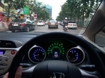 สภาพการจราจรที่หนาแน่นและพื้นที่ที่ค่อนข้างจำกัดในการจอดรถของเมืองอย่างกรุงเทพมหานคร ทำให้การขับขี่ใช้งานรถเล็กประหยัดพลังงานอย่าง Jazz Hybrid มีความลงตัวใช้ได้ ขนาดที่สั้นแต่มีความกว้างของห้องโดยสารที่ถูกออกแบบให้มีพื้นที่เหนือศีรษะ มากกว่าปกติ ทำให้การขับขี่ไม่รู้สึกอึดอัดเหมือนรถเล็กบางยี่ห้อ ระบบส่งกำลังแบบ CVT แปรผันไปตามความเร็ว มันค่อนข้างนุ่มนวล ไหลลื่นแต่ออกจะน่าเบื่ออยู่บ้างในบ้างเวลาที่ต้องการทำความเร็ว เมื่อกดคันเร่งลงลึกสุด ระบบเกียร์ CVT จะตอบสนองอย่างค่อยเป็นค่อยไปตามสมองกลเกียร์ที่จะแปรผันไปตามระดับความเร็ว อัตราเร่งแบบไหลเรื่อยๆ ของคันเร่งไฟฟ้าในโหมดประหยัดถูกออกแบบให้มีความเหมาะสมกับประสิทธิภาพในการแสดงตัวตนว่าเป็นยนตรกรรมประหยัดพลังงาน แม้มอเตอร์จะทำงานได้ไม่นานนักจากขนาดที่กะทัดรัดของชุดแบตฯ แต่ความประหยัดจะเกิดขึ้นทันทีที่คุณใช้คันเร่งของมันอย่างทะนุถนอมในโหมด ECON ระบบจะเข้ามาหน่วงคันเร่งไฟฟ้าไม่ให้ว่องไวตอบสนองต่อการกดรวดเร็วจนเกินไป รวมถึงเกียร์ที่ค่อยๆ ไต่ระดับความเร็ว และเมื่อขับด้วยความเร็วไม่เกิน 40 กิโลเมตรต่อชั่วโมง ระบบ Hybrid IMA จะขับเคลื่อนด้วยมอเตอร์ไฟฟ้าทันที แม้จะเป็นเพียงแค่ระยะเวลาสั้นๆ ก่อนที่เครื่องยนต์จะเข้ามาสานต่อ แต่การประสานการทำงานของเครื่องยนต์และมอเตอร์ที่ติดตั้งอยู่ภายในเกียร์ CVT ทำให้อัตราสิ้นเปลืองเชื้อเพลิงหรูหรากว่า