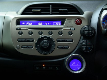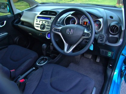 ภายในห้องโดยสารยังคงกลิ่นอายของรถเล็กยอดนิยมเอาไว้อย่างครบถ้วน และเหมือนกับ Jazz รุ่นเครื่องยนต์ปกติ ที่ไม่เหมือนคือหน้าปัดมาตรวัดซึ่งมีรูปแบบแตกต่างออกไป พลาสติกคอนโซลแบบปั๊มขึ้นรูป ดีไซน์ให้มีขนาดที่ใหญ่โตขึ้นตามสไตล์ของรถ Honda ในยุคใหม่ ทั้ง