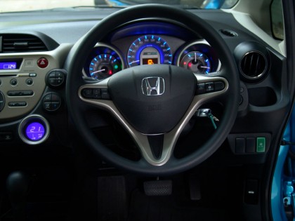 ภายในของ Jazz Hybrid แทบไม่แตกต่างไปจากรุ่นเครื่องยนต์ปกติในรุ่น V มีเพียงหน้าปัดมาตรวัดกับสีสันที่แปรเปลี่ยนไปเพื่อให้เจ้าของได้รับรู้ว่า กำลังขับรถ Jazz เครื่องยนต์ลูกผสมมอเตอร์ไฟฟ้า หน้าปัด MID ยังทำหน้าที่แจ้งเตือนตำแหน่งการเปิดปิดประตู เข็มขัดนิรภัย อุณหภูมิภายนอก ระยะทางต่อเชื้อเพลิงในถังที่สามารถไปถึง ระบบชาร์จและถ่ายเทพลังงานของการขับเคลื่ิอนทั้งจากเครื่องยนต์และจาก มอเตอร์ไฟฟ้า (ซึ่งทำงานน้อยไปสักนิด) รวมถึงการแจ้งเตือนระดับของการขับขี่ในโหมด ECON เพื่อให้ผู้ขับขี่ใช้คันเร่งได้อย่างถูกต้องและประหยัดเชื้อเพลิงอย่างสูงสุดเท่าที่ระบบ Hybrid IMA จะสามารถทำได้ ตำแหน่งท่านั่งที่สูงโด่งคล้ายการควบคุม MINI MPV แม้จะทำให้ทัศน์วิสัยของการมองเห็นกว้างขึ้น แต่ผมอยากได้เบาะที่ปรับระดับให้เตี้ยลงมากกว่านี้ เพื่อการควบคุมที่ดีและลดแรงเหวี่ยงเมื่อต้องขับเข้าสู่ทางโค้งด้วยความเร็ว ที่มากกว่าการใช้งานในชีวิตประจำวัน