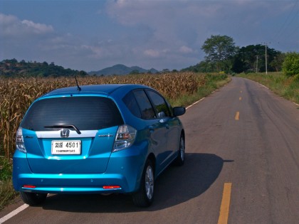 Honda Brio Amaze อีโคคาร์รุ่นสี่ประตูที่เพิ่งจะเปิดตัวไปเมื่อเร็วๆ นี้ นับเป็นการเปิดตัวรถยนต์ในปี 2012 ของ Honda ถึง 10 รุ่นภายในเวลาเพียงไม่กี่เดือน เมื่อวิ่งบนทางไฮเวย์และคอยควบคุมคันเร่งไม่ให้มากจนเกินไป อัตราสิ้นเปลืองเชื้อเพลิงของ Jazz Hybrid จะอยู่ที่ 16-18 กิโลเมตรต่อลิตรที่ความเร็ว 80-100 กิโลเมตรต่อชั่วโมง แต่หากใช้ความเร็วเดินทางอย่างต่อเนื่องที่ 120-140 กิโลเมตรต่อชั่วโมง อัตราสิ้นเปลืองจะเพิ่มขึ้น การเร่งแซงรถช้าโดยกดคันเร่งจนมิด เครื่องยนต์และมอเตอร์ไฟฟ้าจะรับหน้าที่ผสานกำลังในรูปของแรงบิดอย่างต่อเนื่อง ในช่วงที่ผมขับโดยใช้ความเร็วต่ำไม่เกิน 60-80 กิโลเมตรต่อชั่วโมง มอเตอร์ไฟฟ้าจะเข้ามาขับเคลื่อนโดยเข้าสู่โหมด EV อย่างที่กล่าวว่ามอเตอร์ของ Jazz Hybrid ทำงานสั้นๆ และได้ระยะไม่มากเท่า Prius ซึ่งเกิดจากขนาดของเครื่องยนต์ ระบบมอเตอร์เสริมแรงและแบตเตอรี่มีขนาดที่เล็กกว่า รวมถึงราคาของเจ้า Jazz Hybrid ก็ยังถูกกว่ากันอยู่มาก ส่วนยางลดแรงต้านทานของ Michelin รุ่น Energy MX1 ขนาด 175/65/R15 84T ที่ความเร็วต่ำให้การยึดเกาะในระดับที่ปกติ แต่หากใส่กันในโค้งแรงๆ แล้วยางหน้าแคบจะออกอาการอยู่บ้าง ทั้งเสียงของขอบแก้มยางที่ส่งออกมาเมื่อเข้าโค้งด้วยความเร็วที่มากกว่าปกติ รวมถึงอาการแปลกๆ ช่วงกลางโค้งหากขับแบบรุนแรง จากขนาดของยางที่ต้องการความประหยัดเมื่อออกแบบมาสำหรับรถประหยัดพลังงาน มากกว่าจะเอามาวิ่งที่ย่านความเร็วสูงกันบ่อยๆ ส่วนการเปลี่ยนล้อและยางให้มีขนาดใหญ่ขึ้น จะส่งผลให้การยึดเกาะดีขึ้น แต่อัตราสิ้นเปลืองก็จะเพิ่มขึ้นเป็นเงาตามตัวไปด้วยอย่างเลี่ยงไม่ได้