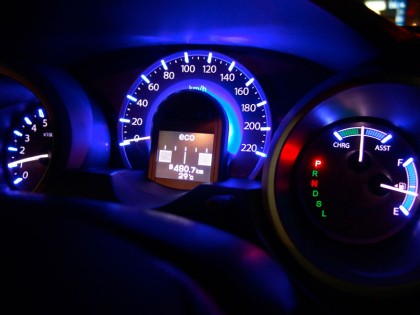 หน้าปัดมาตรวัดแบบเรืองแสง พร้อมจอแสดงข้อมูลการขับขี่ MID Multi Information Display กับรายละเอียดของโหมดต่างๆ ที่แสดงผ่านหน้าจอขนาดเล็กที่ให้ความคมชัดและอ่านค่าได้ง่าย ทั้งโหมด ECON แสดงสัญลักษณ์รูปดอกไม้หากผู้ขับใช้คันเร่งอย่างระมัดระวัง / แจ้งอัตราสิ้นเปลืองเชื้อเพลิง 1 ลิตรต่อกิโลเมตร /อุณหภูมิภายนอกห้องโดยสาร /น้ำมันเชื้อเพลิงที่เหลือในถังกับระยะทางที่สามารถวิ่งไปถึง /ทริปมิเตอร์ / การถ่ายเทพลังงานระหว่างเครื่องยนต์ มอเตอร์ไฟฟ้าและแบตเตอรี่ ปุ่ม ECON สีเขียวที่ช่วยให้ประหยัดเชื้อเพลิงมากยิ่งขึ้น โดยระบบจะเข้าไปช่วยให้การใช้คันเร่งมีความยืดหยุ่นมากขึ้น ปรับการทำงานของเครื่องยนต์ มอเตอร์ไฟฟ้า และเกียร์ CVT ให้ทำงานโดยใช้พลังงานอย่างจำกัดและมีความสัมพันธ์กันขณะขับเคลื่อน