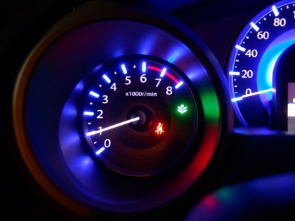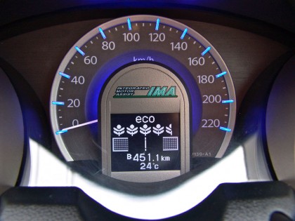 Honda CRZ ซึ่งเป็นยนตรกรรมแบบสปอร์ตเครื่องยนต์ Hybrid มาตรวัดของ