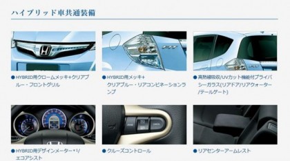 Honda Jazz Hybrid เป็นอีกหนึ่งทางเลือกสำหรับการใช้รถยนต์ของคนเมือง มาพร้อมกับ Concept เรียบล้ำสมัย แตกต่างด้วยชุดกระจังหน้า ไฟหน้า และไฟท้ายเลนส์ขาวแบบหลอด LED อุปกรณ์อำนวยความสะดวกครบ ห้องโดยสารล้ำอนาคตด้วยเทคโนโลยี ECO Assist ระบบช่วยการขับขี่แบบประหยัดพลังงาน มาตรวัดแสดงผลการขับขี่แบบประหยัดเชื้อเพลิง มีให้เลือก 4 สี เช่น สีขาวบริลเลียนที สีเงินอลาบาสเตอร์ สีเขียวแฟลชไลม์และสีฟ้าเซรูเลียน ภายในตกแต่งด้วยเบาะสีดำและสีน้ำเงินเข้ม คิ้วโครเมียมที่ฝาท้ายทำจากพลาสติกชุบโครเมียมสีเงิน กับแถบสะท้อนแสงขนาดเล็กข้างมุมด้านล่างของสปอยเลอร์หลัง ด้านข้างของ Jazz Hybrid เรียบลื่นไร้คิ้วขอบใดๆ ทั้งสิ้น มือจับประตูสีเดียวกับตัวถังยังช่วยให้มุมมองด้านข้างมีความกลมกลืน ล้อแม็กขนาด 15 นิ้ว ลายใหม่ทำจากอัลลอยปั๊มขึ้นรูป ห่อรัดด้วยยางลดแรงต้านทานผิวถนน Michelin รุ่น Energy MX1 ขนาด 175/65/R15 เป็นยางหน้าแคบที่เน้นลดแรงเสียดทานและช่วยให้ประหยัดเชื้อเพลิงโดยยังคงสมรรถนะของการยึดเกาะเอาไว้เหมือนเดิม ส่วนกระจกมองข้างไม่มีเลนส์ไฟเลี้ยวมาให้เหมือนรุ่นอื่นๆ