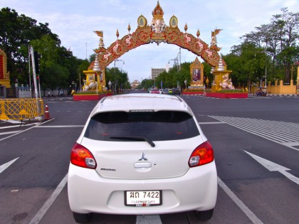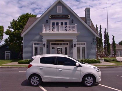 7 วันกับการอยู่กับเจ้าตัวเล็กน่ารัก ด้วยเรือนร่างที่กะทัดรัดทำให้ Mitsubishi Mirage GLS Auto คันทดสอบ ขับได้อย่างคล่องแคล่วว่องไวสำหรับถนนหนทางในกรุงเทพมหานคร บนน้ำหนักตัวเพียงแค่ 800 กิโลกรัมนิดๆ กับพลังแรงบิด 100 นิวตันเมตรหรือ 10.2 กิโลกรัม / เมตร จากเครื่องสามสูบ 78 แรงม้า เจ้า Mirage มีอัตราเร่งตีนต้นช่วงออกตัวไม่อืดอาดชักช้าจนน่าเบื่อ และให้การตอบสนองต่อการเร่งช่วงออกจากสัญญาณไฟแดงค่อนข้างดี พวงมาลัยให้สัมผัสที่เบาจนแทบจะไม่ต้องออกแรงหมุนเมื่อมันจอดอยู่กับที่ ทำให้การเลี้ยวเข้าออกจากที่คับแคบกระทำได้อย่างง่ายดาย แต่ที่ย่านความเร็วสูงคงต้องระวัง เพราะอาการที่ค่อนข้างสับสนและเบาจนขาดสัมผัสที่ดี พวงมาลัยไฟฟ้าของมันเหมาะกับการขับขี่ใช้งานในเมือง ที่ต้องอาศัยความคล่องตัวซอกซอนไปตามสภาพการจราจรในย่านความเร็วต่ำ รวมถึงการเข้าออกในที่คับแคบ ยาง Bridgestone Ecopia ขนาด 14 นิ้ว ไซส์ 165/65/R14 มีหน้ายางสัมผัสกับพื้นถนนแค่พอได้อาศัย หากอยากได้การยึดเกาะที่เพิ่มมากขึ้นต้องเปลี่ยนขอบล้อไปที่ 15 นิ้วพร้อมยางที่มีหน้ากว้างมากกว่า แต่อัตราสิ้นเปลืองเชื้อเพลิง ก็จะเพิ่มตามขนาดของล้อและยางไปด้วย เนื่องจากเป็นตัวแปรที่ค่อนข้างตรง เมื่อต้องการพื้นที่ในการยึดเกาะ แรงต้านจากยางขนาดใหญ่จะทำให้กินเชื้อเพลิงมากขึ้นนั่นเอง