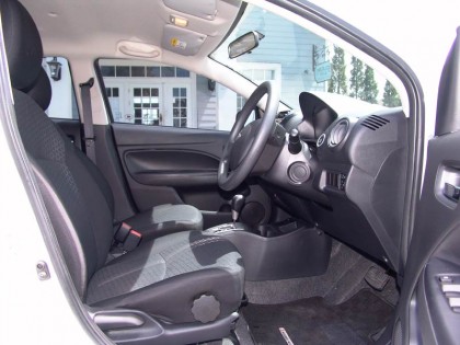 แม้จะเป็นเพียงแค่ ECO CAR แต่ภายในห้องโดยสารของ Mitsubishi Mirage กลับครบครันด้วยอุปกรณ์อำนวยความสะดวกที่มีรูปแบบเรียบง่าย เบาะนั่งหุ้มด้วยผ้าเนื้อดีสีเทา-ดำ มีขนาดค่อนข้างใหญ่ทำให้นั่งได้อย่างสบายเนื้อสบายตัว เบาะคู่หน้าปรับตั้งด้วยกลไกเลื่อนเข้า-ออก หรือยกขึ้น-ลง ตำแหน่งของการนั่งขับค่อนข้างสูงคล้ายกับรถ MINI MPV พวงมาลัยสามก้านหุ้มไวนิลไม่มีปุ่มหรือสวิตช์ใดๆ ทั้งสิ้น พลาสติกคอนโซลกลางกับแดชบอร์ดอยู่ในระดับกลางๆ ส่วนช่องแอร์ทรงกลมบริเวณมุมทั้งสองข้างของชุดคอนโซลมีงานดีไซน์ที่ลงตัว กึ่งกลางคอนโซลวางชุดเครื่องเสียงระบบสั่งงานด้วยการสัมผัสไปที่หน้าจอ มีทั้ง CD / MP3 / AM-FM / รวมถึงระบบนำทางและกำหนดพิกัดด้วยดาวเทียม ช่องเชื่อมต่ออุปกรณ์เล่นเพลงจากภายนอกอยู่ใต้ช่องเก็บของตอนหน้าของเบาะผู้โดยสาร สามารถเชื่อมต่อ iPod ได้อย่างสะดวก ผ่านการคอนโทรลด้วยปลายนิ้วที่หน้าจอแบบสัมผัส