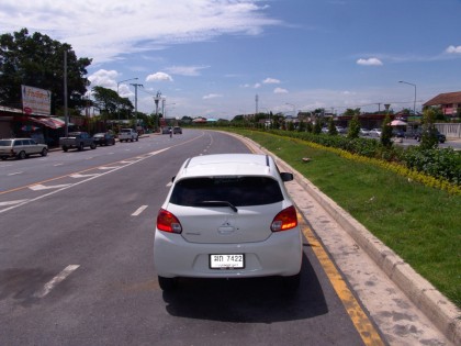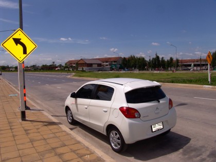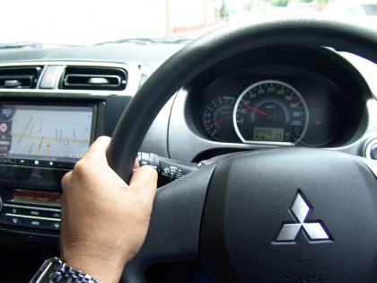 สิ่งที่ต้องระมัดระวังใน Mitsubishi Mirage คือการใช้ความเร็วสูง แล้วหักพวงมาลัยเปลี่ยนทิศทางแบบกะทันหัน ฐานล้อสั้นและขนาดของยางที่เล็กทำให้มันมีอาการค่อนข้างไว บนความเร็วเดินทางที่เหมาะสมในระดับ 100 -120 กิโลเมตรต่อชั่วโมง เมื่อขับขี่ทางไกลๆ จะทำให้คุณสามารถขับขี่รถเล็กแบบวิ่งทางยาวๆ ได้ดีและปลอดภัยมากกว่าจะใส่กันชนิดไม่บันยะบันยังตลอดทาง ที่ระดับความเร็วในเมืองประมาณ 80 กิโลเมตรต่อชั่วโมง รอบเครื่องยนต์จะอยู่ที่ 1,800 รอบต่อนาที รอบเครื่องยนต์ที่ต่ำพอๆ กับรถเครื่องยนต์ 1.5 บางรุ่น เมื่อวิ่งที่ย่านความเร็วดังกล่าวช่วยให้อัตราการสิ้นเปลืองเชื้อเพลิงของมันมีตัวเลขที่หรูหรา และมันสามารถวิ่งใช้งานด้วยความเร็วปกติแบบเปิดแอร์ประมาณ 22 กิโลเมตรต่อลิตร ซึ่งนับว่าประหยัดใช้ได้เลยทีเดียว