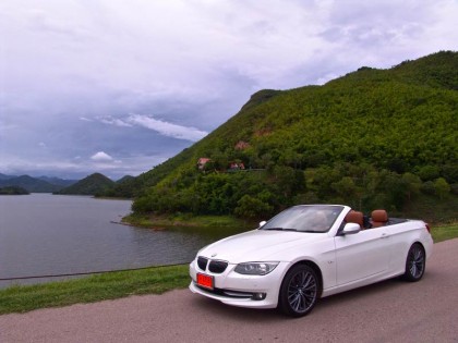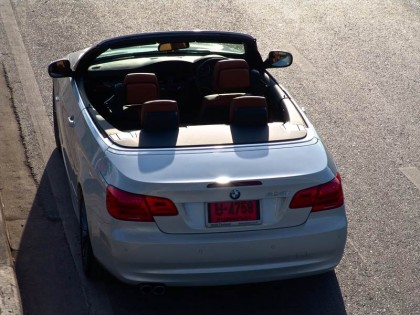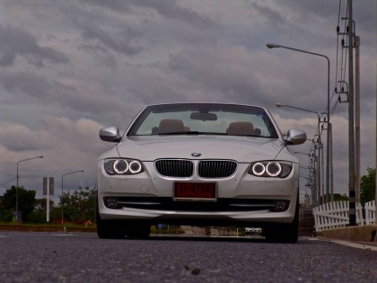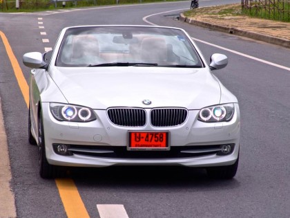 รถทดสอบ BMW 325i Convertible ดูดีมากที่สุดในกลุุ่มรถเปิดประทุนเครื่องยนต์ไม่เกิน 3.0 ลิตร มันคือความสำเร็จของนักออกแบบที่ใช้ความทุ่มเท เพื่อทำให้มันดูดีทั้งตอนปิด หรือเปิดหลังคา คุณภาพและมาตรฐานของการประกอบอยูในระดับสูง และมีรายละเอียดมากกว่ารุ่นซีดาน หรือรุ่น 2 ประตูหลังคาแข็ง เนื่องจากเป็นรถเปิดประทุน โครงสร้างของ E93 จึงถูงยึดดามมากยิ่งขึ้นเพื่อป้องกันการบิดตัว ภายในห้องโดยสารแบบสี่ที่นั่งส่งมอบความสะดวกสบายในการใช้งาน เบาะหลังที่ไม่คับแคบ ยังเป็นมิตรกับผู้โดยสารโดยมีพื้นที่วางเท้าพอสมควร หากคนที่นั่งด้านหน้าไม่ตัวใหญ่จนเกินไป พื้นที่เหนือศีรษะด้านหลังมีไม่มากนัก ซึ่งเกิดจากการออกแบบหลังคาส่วนหลังที่มีกระจกบานหลังลาดเอียงมากกว่าปกติ เพื่อความสวยงาม เส้นสายของตัวรถที่เรียบๆทำให้มันมีมุมมองที่ลื่นไหล ทัศนวิสัยมุมมองด้านหน้าโปร่งโล่ง แต่เสาหลังที่โค้งลงเพื่อให้สอดรับกับรูปทรงเข้ามาบดบังมุมมองด้านท้ายอยู่ บ้าง ผมใช้ความเร็วต่ำและค่อยๆ ทำความรู้จักกับมันก่อนที่จะพาวิ่งออกทางไกล เพื่อเก็บภาพและทดสอบประสิทธิภาพด้านการขับขี่ใช้งาน จำนวนของวันที่มีอากาศเย็นในฤดูหนาวของประเทศไทยหดสั้นลงทุกที แต่ปริมาณของรถยนต์เปิดประทุนกลับเพิ่มมากขึ้นและสวนทางกับสภาพอากาศอย่าง สิ้นเชิง แสดงให้เห็นถึงความนิยมรถเปิดหลังคาในประเทศไทยได้เป็นอย่างดี