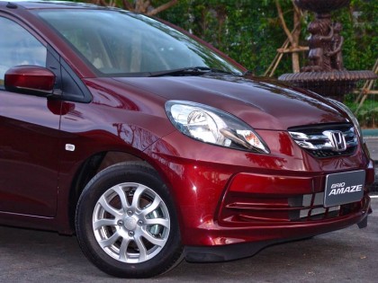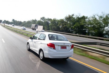การทรงตัวนับว่าทำออกมาได้โดนใจ เมื่อมีกระแสลมปะทะด้านข้างที่ความเร็วสูงกว่า 130 กิโลเมตร เจ้า Brio Amaze ดูจะออกอาการอยู่บ้างเล็กๆ ขนาดของยางเพียงแค่ 175/65/R14 เหมาะกับการวิ่งแบบเรื่อยๆ มากกว่าจะกดกันอย่างต่อเนื่อง การเก็บเสียงอยู่ในระดับเดียวกันกับ Honda Jazz ส่วนความสะดวกสบายของการนั่งโดยสารแทบจะไม่มีความแตกต่างกันระหว่างรุ่น 5 ประตู อุปกรณ์ที่ให้มาก็ยังคงเหมือนกันอีกด้วย ฐานล้อที่ถูกยืดออกไปอีก 60 มิลลิเมตร ทำให้การวิ่งที่ย่านความเร็วสูงสุดมีความนิ่งอยู่พอสมควรหากไม่โดน กระแสลมแรงๆ พัดมาปะทะด้านข้าง การปรับสมดุลเชิงกลของระบบกันสะเทือนมีส่วนช่วยให้การนั่งขับหรือโดยสารมี ความนิ่มนวลในระดับที่น่าพอใจ พวงมาลัยไฟฟ้า EPS ให้ความรู้สึกได้ดีแม้จะไม่ชัดเจนเท่า City แต่ก็อยู่ในเกณฑ์ที่ยอมรับได้ ชุดเครื่องเสียงและชุดควบคุมอุณหภูมิ คอนโซลและอุปกรณ์บางชิ้นที่คล้ายกับรุ่น 5 ประตูยังทำให้ Honda ลดต้นทุนในไลน์การผลิตจากโรงงานลงได้ค่อนข้างมาก ส่งผลให้ราคาค่าตัว 5.2 แสนบาทไม่ไกลเกินเอื้อมสำหรับมนุษย์เงินเดือนที่ต้องเดินทางไปกลับเพื่อ ทำงานในชีวิตประจำวัน