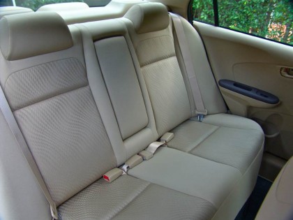 เบาะผู้โดยสารตอนหลังกว้างกว่ารุ่น 5 ประตูเล็กน้อยจากการออกแบบ ตรงกึ่งกลางมีพนักเท้าแขนแบบซีดานขนาดกลางที่พับเก็บหรือดึงออกมาเพื่อใช้ เท้าแขนได้เมื่อต้องนั่งกันไกลๆ แผงประตูหุ้มผ้าสีเดียวกับตัวเบาะ มีที่วางแก้วน้ำมาให้ ซึ่งที่วางแก้วน้ำใน Amaze นั้นมีมาให้มากถึง 9 ตำแหน่ง เพื่อการขับขี่ผ่านทะเลทรายอย่างปลอดภัยไร้กังวล โดยไม่ต้องกลัวว่าจะขาดน้ำหากผู้ขับขี่พกพาน้ำดื่มไปตามจำนวนของที่วางแก้ว ส่วนการปรับตั้งเบาะคู่หน้าใช้แบบแมนนวล ตำแหน่งเบาะคู่หน้าค่อนข้างสูงคล้ายกับ Jazz ซึ่งเลียนแบบการนั่งขับของ MINI MPV ที่เน้นทัศนวิสัยของการมองมากกว่าจะต่ำเตี้ยติดพื้นแบบสปอร์ต แผงบังแดดยังติดตั้งกระจกส่องแต่งหน้าสำหรับคุณสุภาพสตรี รวมถึงช่องเก็บของที่ด้านหลังของเบาะคู่หน้า พวงมาลัยปรับสูงต่ำได้แต่ปรับไกลใกล้ไม่ได้กับกุญแจแบบรีโมตคอนโทรล