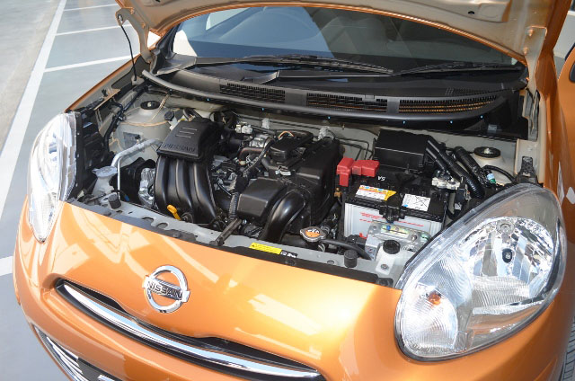 นิสสัน มาร์ช ใช้เครื่องยนต์ที่พัฒนาจาก HR 16 DE 1,600 ซีซี จากทีด้า แต่ถูกออกแบบใหม่ให้เหลือเพียง 3 สูบ เป็นเบนซินรหัส HR 12 DE DOHC 12 วาล์ว หัวฉีดมัลติพอยท์ ECCS 32 บิท กระบอกสูบXระยะชัก 78.0X83.6 มม. อัตราส่วนการอัด 10.2:1 ความจุ 1,198 ซีซี 79 แรงม้า ที่ 6,000 รอบ/นาที แรงบิด 10.8 กก.-ม. ที่ 4,400 รอบ/นาที เกียร์ CVT ขับเคลื่อนล้อหน้า อัตราสิ้นเปลืองจากโรงงานประมาณ 20 กม./ลิตร ความจุถังน้ำมัน 41 ลิตร ช่วงล่างหน้าแม็คเฟอร์สันสตรัท หลังทอร์ชั่นบีม เบรกหน้าดิสก์ หลังดรัม กับน้ำหนักตัว 900-965 กิโลกรัม