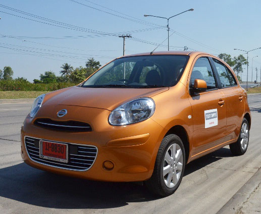 เมื่อวันที่ 18 มกราคม 2556 ทีมงาน Thai Product Review และ Checkraka.com ได้รับความอนุเคราะห์จากบริษัท ไทยยานยนตร์ จำกัด ผู้แทนจำหน่ายรถยนต์นิสสันอย่างเป็นทางการภายใต้ชื่อ TSS-NS NISSAN official dealer สาขาคลองตัน ให้รับนิสสัน มาร์ช มาทดสอบ โดยเป็นรุ่นท็อปคือ VL-CVT แต่ไม่ใช่รุ่น Sport version เริ่มทดสอบจากศูนย์ TSS-NS คลองตัน ผ่านแยกพระราม 9 รามคำแหง เลี้ยวขวามุ่งสู่ถนนมอเตอร์เวย์ แล้วเข้าถนนร่มเกล้า-ลาดกระบัง เพื่อเชื่อมกับถนนสุวินทวงค์ และตรงเข้าถนนรามอินทราลัดถนนสวนสยามเข้าถนนสุขาภิบาล 1 และลัดไปออกถนนสุขาภิบาล 3 รามคำแหง และตรงข้ามสะพานรามคำแหงมุ่งหน้าคลองตันกลับศูนย์นิสสัน รวมระยะทางทั้งหมด 72.1 กม.