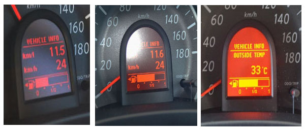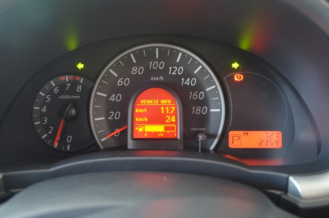 อัตราสิ้นเปลืองบนหน้าปัด 11.7 กม./ลิตร ระยะทางรวม 72.1 กม. แต่น้ำมันแทบไม่ลดเลย