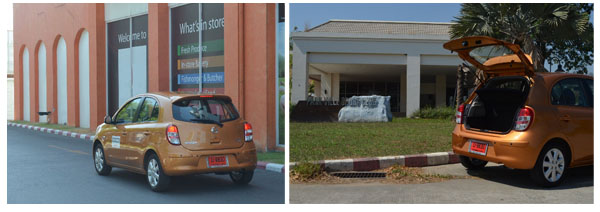 จุดกลับรถแคบๆ ในหมู่บ้านแห่งหนึ่ง มาร์ชไปสบายแบบม้วนเดียวจบ วัสดุและการประกอบ ชิ้นส่วนในห้องโดยสารนับว่าดีเกินราคา ใช้วัสดุเกรดใกล้เคียงหรือเทียบเท่าซับคอมแพ็กต์บางรุ่น ชิ้นส่วนต่างๆ ยึดแน่น สวิตช์แผงควบคุมเครื่องเสียงแน่นหนา