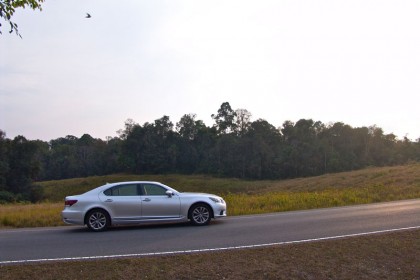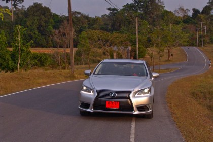 น้ำหนักที่เบาสบายของพวงมาลัยและระบบบังคับเลี้ยวที่ใช้มอเตอร์แปรผันน้ำหนักไปตามความเร็ว ทำให้การควบคุมตัวรถที่ทั้งใหญ่และยาวมีความสะดวกคล้ายกำลังขับรถเล็กๆ ยังไงยังงั้น โค้งสลับกับทางยาวๆ ทำให้เจ้า LS 460L ต้องใช้ความพลิ้วของระบบรองรับเข้ามาช่วยเสริมการควบคุมที่มอบความรู้สึกมั่นคงและนิ่ง คันเร่งตอบสนองได้ดีเพียงแค่แตะเบาๆ มันก็พุ่งทะยานไปตามกำลังรอบของ เครื่องยนต์ที่เน้นในเรื่องแรงบิดรอบต่ำได้อย่างเฉียบคม ช่วง 200 กิโลเมตรแรกจึงค่อนข้างน่าเบื่ออยู่บ้าง ตัวรถเงียบสนิทหากคุณไม่เปิดเครื่องเสียง การบังคับควบคุมตัวรถไม่ใช่ปัญหาแม้จะมีน้ำหนักมากถึงเกือบ 2 ตัน พวงมาลัยสื่อสารกับสภาพผิวทางในแบบสังเคราะห์และขาดสัมผัสที่ดีแบบสปอร์ตไปบ้างเนื่องจากเป็นรถยนต์ของพวกผู้ดีมีตระกูล เบรกอยู่ในระดับที่ดี ช่วงแรกมันจะให้ความรู้สึกหนืดๆ อยู่บ้างเมื่อต้องเบรกที่ย่านความเร็วต่ำแบบขับในเมือง แต่พอเพิ่มน้ำหนักก็ตอบสนองได้ดีและให้ความมั่นใจสูงแม้จะอัดเข้าสู่หัวโค้งแล้วเบรกลึกๆ ก่อนจะส่งตัวรถทะยานออกไปสู่ปลายโค้ง ระบบส่งกำลังซึ่งใช้เกียร์ 8 อัตราทดลื่นไหลไร้รอยต่อใดๆ มันลื่นจนดูคล้ายกับรถไฟฟ้าจากอัตราทดที่ขึ้น-ลงไปตามย่านความเร็ว รถทดสอบ LS 460L คันนี้ยังคงอยู่ในสภาพที่สมบูรณ์และวิ่งมาน้อยมากๆ ถุงลมในระบบ Air Suspension ทำงานได้อย่างไร้ที่ติแม้จะต้องผจญกับทางแย่ๆ ในบางช่วง การขับรถคันโตคนเดียวท่ามกลางสภาพเส้นทางที่เต็มไปด้วยป่าเขาลำเนาไพรแบบนี้ บ่อยๆ ครั้งทำให้รู้สึกเหงาได้เหมือนกัน