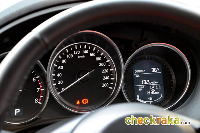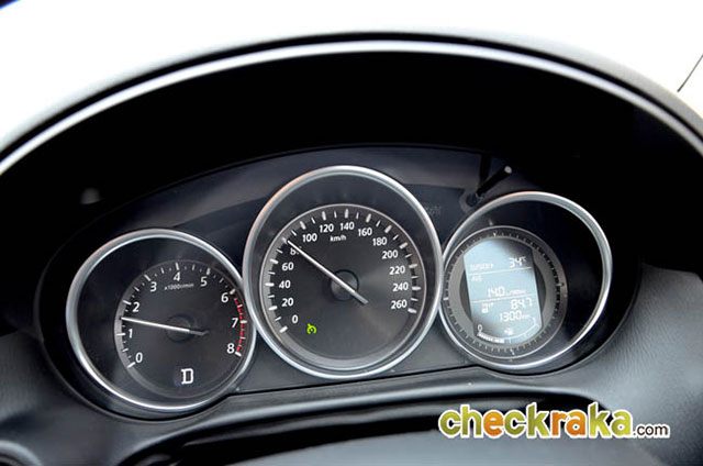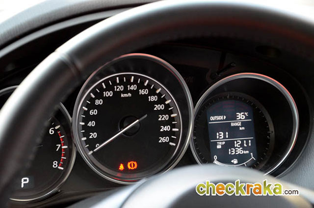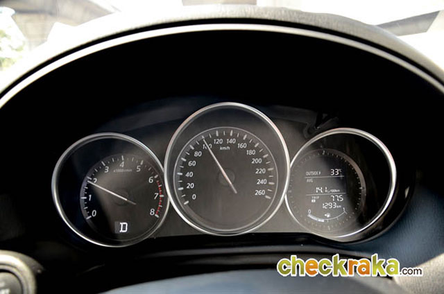 มาสด้า CX-5 รุ่นที่ทดสอบเป็นรุ่นเครื่องยนต์ 2.5 ลิตร ดังนั้นอัตราบริโภคน้ำมันย่อมมากตามขนาดซีซี แต่หากเปรียบเทียบกับรถที่มีเครื่องยนต์ระดับเดียวกันในตลาดคู่แข่งนั้น นับว่าประหยัดในระดับ ต้นๆ จากการทดสอบในกรุงเทพฯ และปริมณฑลเป็นหลักทั้งเส้นทางที่การจราจรติดขัด และบางช่วงทางโล่งระยะสั้นๆ ทำให้ลักษณะการขับครั้งนี้ไม่สามารถวิ่งแช่ความเร็ว 80-120 กม./ชม.ได้ยาวๆ ส่วนมากจะติดสลับหยุดนิ่ง ช่วงในตัวเมืองและช่วงถนนบางนา-ตราด กิโลเมตรที่ 20 กว่าๆ ซึ่งกำลังปรับปรุงผิวถนน ทำให้รถติดยาวสลับนิ่งกว่าจะผ่านช่วงนี้ก็ใช้เวลาประมาณ 10 นาที จึงเป็นการขับทดสอบในลักษณะใช้งานในเมืองจริงๆ ดังนั้นอัตราสิ้น เปลืองน้ำมันเฉลี่ยย่อมเป็นการใช้งานจริงล้วนๆ ครับ สำหรับความเร็วที่ 80 กม./ชม. ใช้รอบเครื่องยนต์เพียง 1,500 รอบ/นาที และที่ 120 กม./ชม. ใช้เพียง 1,800 รอบ/นาที เท่านั้น นับว่าประหยัดได้มาก