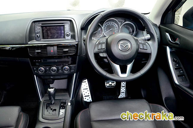 ที่นั่งผู้ขับ/ผู้โดยสาร เมื่อได้นั่งเบาะผู้ขับที่หุ้มด้วยหนังแท้ ให้ความรู้สึกโอบกระชับเหมือนขับรถสปอร์ต ซึ่งภายในมาสด้าออกแบบได้โดนใจมาก เพราะมีกลิ่นอายของรถสปอร์ตแนวยุโรปปะปน อยู่ การจัดวางอุปกรณ์การใช้งานสะดวกและให้ผู้ขับเป็นศูนย์กลาง พวงมาลัยมัลติฟังก์ชันควบคุมระบบเครื่องเสียงและจอแสดงผลอัจฉริยะที่หุ้มหนังแท้สลับวัสดุโครเมียมยิ่งรู้สึกว่า นี่ไม่ใช่รถ SUV แผงประตูออกแบบได้ลงตัว โดยเฉพาะที่จับด้านในแนวเดียวกับรถยุโรประดับรุ่นสูงๆ ตำแหน่งหัวเกียร์ และการเปลี่ยนตำแหน่งเป็นแบบขั้นบันไดอยู่ต่ำลงมาเล็กน้อยเพื่อให้พื้นที่ช่วงระบบเครื่องเสียงและแผงควบคุมระบบปรับอากาศได้สะดวก แผงมาตร วัดแบบทรงกลม 3 ช่องสะดุดตาพร้อมกรอบโครเมียมมองเห็นได้ชัดเจน ตำแหน่งที่นั่งตอนหลังออกแบบให้ระดับหัวเข่าชันขึ้นเล็กน้อยเพื่อลดแรงเหวี่ยงเมื่อรถเบรกกะทันหันทำให้ผู้โดยสารสามารถทรงตัวได้อย่างถูกสรีระ และ ยังสอดปลายเท้าที่ใต้เบาะหน้าเพื่อความผ่อนคลายเมื่อเดินทางไกลๆ