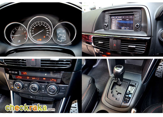 ระบบปรับอากาศ การใช้งานระบบแอร์ง่ายมากเนื่องจากเป็นแบบอัตโนมัติ เมื่อเข้ามาในรถ เหยียบเบรกกดปุ่มสตาร์ต จากนั้นก็กดปุ่ม "AUTO" เพียงเท่านี้ ระบบจะปรับอุณหภูมิภายในรถ อัตโนมัติ หรืออยากปรับแยกฝั่งซ้าย-ขวาก็ย่อมได้ และไม่ว่าสภาพอากาศในวันที่ทดสอบจะร้อนขนาดแค่ไหน เมื่ออยู่ใน CX-5 คันนี้ก็เย็นสบายครับ แม้จอดรถตากแดดพักทานอาหารไว้สัก 25-30 นาที เมื่อเข้ามาในรถที่ร้อนระอุ แต่เมื่อขับเปิดแอร์ไปสักครู่ ก็เริ่มเย็นฉ่ำทั่วทั้งคัน