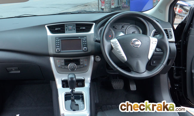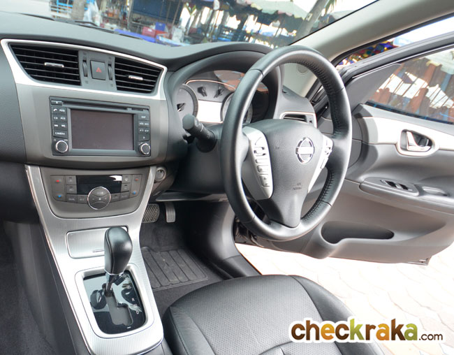 ภายในเหมือนรุ่น 1.8 ตัวท็อปแทบทุกอย่าง แตกต่างเพียงที่ฐานของคันเกียร์มีช่องสามารถผลักให้เป็นโหมดเปลี่ยนเองได้ เพิ่มความมันได้อีกมากมาย ระบบเครื่องเสียง FM-AM/MP3/USB/AUX/Bluetooth/Navi/กล้องมองขณะถอยหลัง และระบบปรับอากาศอัตโนมัติแยกปรับซ้ายขวาได้กับช่องแอร์ตอนหลัง ซึ่งก็เป็นแบบเดียวกับพัลซาร์รุ่นเครื่องยนต์ธรรมดา