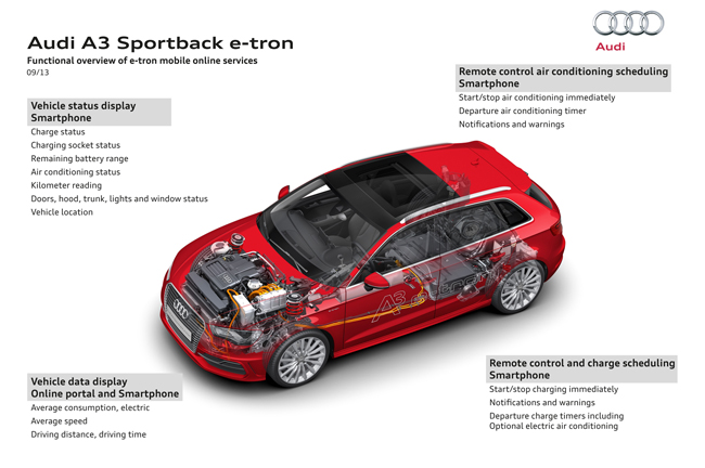 เทคโนโลยีที่ไม่หยุดนิ่งจากออดี้นั่นคือ การพัฒนารถยนต์ระบบไฮบริด A3 e-tron ที่สามารถวิ่งด้วยมอเตอร์ล้วนๆ ได้ระยะทางมากถึง 50 กม. พร้อมระบบชาร์ตไฟแบบเสียบปลั๊ก Plug-in Hybrid นี่เป็นส่วนหนึ่งในความตั้งใจอนุรักษ์พลังงานของออดี้พร้อมช่วยลดมลพิษบนโลกใบนี้