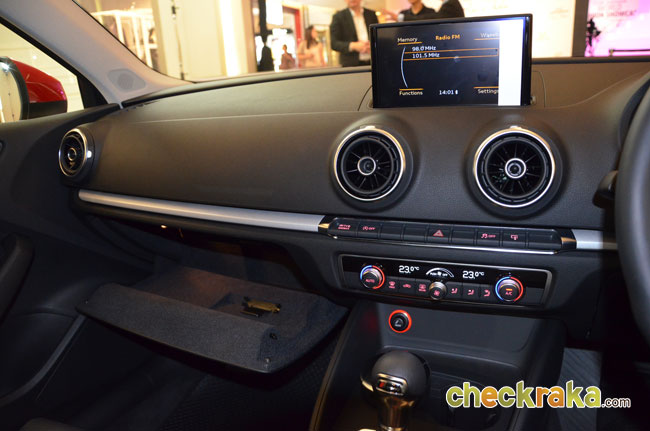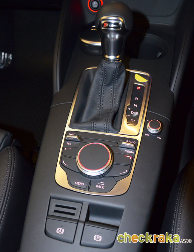 ปุ่มควมคุมความบันเทิงและสวิตช์ระบบเบรกมือไฟฟ้าสามารถตั้งให้เบรกอัตโนมัติเมื่อจอดในทางลาดชันได้ ช่องแอร์หลังพร้อมช่องจ่ายไฟ 12 โวลต์ ห้องบรรจุสัมภาระท้ายขนาด 425 ลิตร สามารถพับเบาะตอนหลังแบบ 60:40 เพิ่มพื้นที่ได้อีกมากมาย ปลายท่อแบบออกคู่สวยหรูดุดัน ออดี้ เอ3 ลีมูซีน ใช้เครื่องยนต์เบนซินไดเร็คอินเจ็คชั่น 4 สูบ 1,395 ซีซี พร้อมเทอร์โบชาร์จ 125 แรงม้า ที่ 5,000-6,000 รอบ/นาที แรงบิด 200 นิวตันเมตร ที่ 1,400-4,000 รอบ/นาที ระบบเกียร์อัตโนมัติ S-tronic 7 จังหวะ ขับเคลื่อนล้อหน้า ซึ่งนับว่ามีกำลังเกินตัวเพราะเครื่องยนต์ระดับ 1.4 ลิตรให้แรงม้าขนาดนี้ในรถที่มีน้ำหนักเพียง 1 ตันนิดๆ ส่งผลให้ออดี้ เอ3 สามารถไต่ระดับความเร็วโดยใช้อัตราเร่ง 0-100 กม./ชม. เพียง 9.3 วินาที ความเร็วสูงสุดถึง 211 กม./ชม. และด้วยความจุที่ต่ำแต่มีกำลังล้นเหลือจึงทำให้ได้ความประหยัดน้ำมัน 20 กม./ลิตร ซึ่งในระดับใกล้เคียงหรือมากกว่าอีโคคาร์ และรถยนต์ไฮบริดบางรุ่นด้วยซ้ำไป