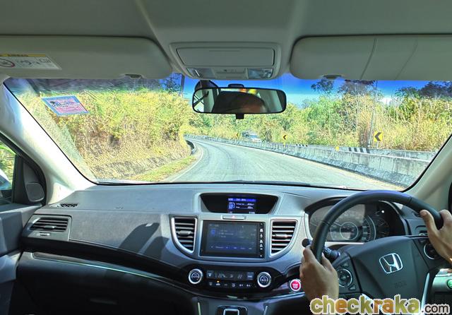 ลุยฝุ่นลืมความหรูไปเลย การตอบสนองช่วงล่างนับว่าปรับได้เหมาะสมกับตัวรถ โดยเส้นทางทดสอบเป็นทางเรียบสลับทางขึ้น-ลงเขา และสภาพผิวถนนในบางช่วงเป็นหลุมเป็นบ่อเกือบตลอด แต่การรับแรงสะเทือนเมื่อขับผ่านความเร็วสูงๆ ก็ทำได้ดี ไม่รู้สึกกระเด้งจนตัวคลอน แต่ก็พอรับรู้การสั่นและเสียงโช้กอัพกระแทกได้บ้าง ในขณะเข้าโค้งทั้งทางชันเนินเขาและโค้งแบบหักศอกด้วยความเร็วสูงพอสมควร ซีอาร์-วีใหม่ ก็สามารถควบคุมได้ดี ซึ่งผสานความนุ่มนวลแต่ไม่ย้วยกับความหนืดของช่วงล่างที่เกาะถนนได้น่าประทับใจ ระบบเบรกไม่ลึกจนเกินไป ออกแรงเพียงเล็กน้อยก็เริ่มตอบสนอง และนุ่มเท้า แม้ต้องเบรกเต็มแรงก็ให้ความนุ่มนวลแต่เอาอยู่ รับประกันความนุ่มได้ดีจริงๆครับ