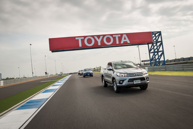 สำหรับการทดสอบระหว่างวันที่ 10 - 11 ก.ค. 58 นี้ มีรถกระบะโตโยต้า ไฮลักซ์ รีโว่ รุ่น 2.8 ลิตร หลากตัวถังหลายรุ่น เช่น ซิงเกิ้ล แค็บ 4X4, สมาร์ท แค็บ 4X4 และดับเบิ้ล แค็บ 4X4 จำนวนกว่า 20 คัน ที่จอดเรียงรายให้สื่อมวลชนได้สลับทดลองขับกันอย่างครบถ้วน ทั้งระบบเกียร์ธรรมดาหรืออัตโมัติมาให้ได้ลองกันอีกด้วย