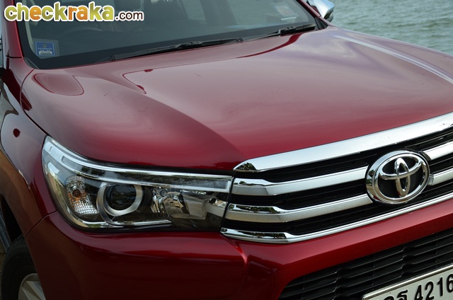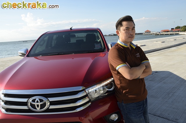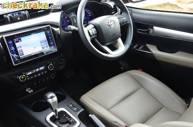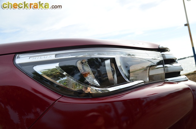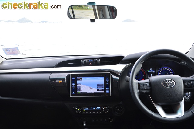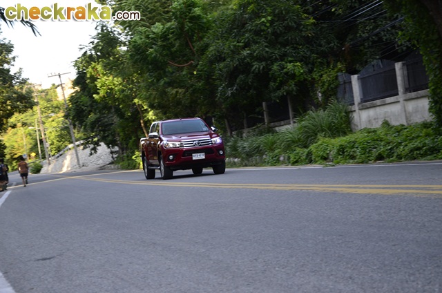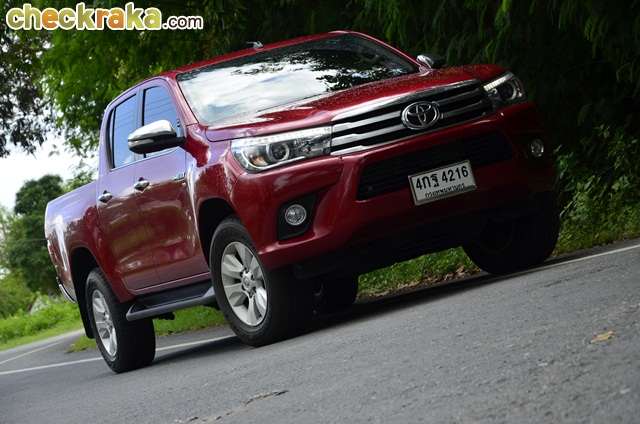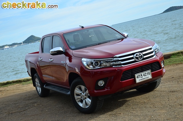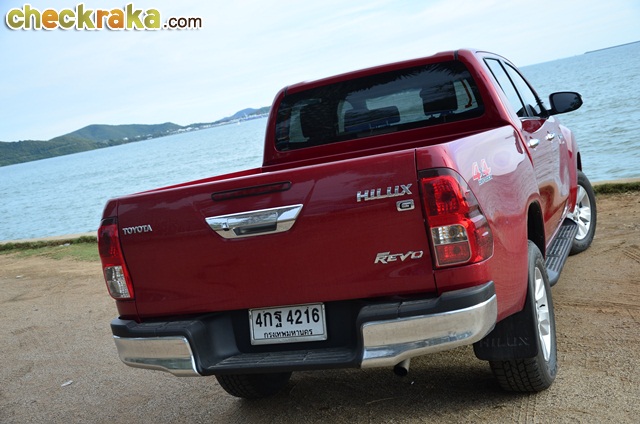 การเดินทางก็ไม่ไกลจากกรุงเทพฯ โตโยต้า ไฮลักซ์ รีโว่ ดับเบิ้ล แค็บ กับรุ่น 2.8G AT ขับเคลื่อน 4 ล้อ นับเป็นที่สุดของรุ่นย่อยรีโว่ เพียบพร้อมด้วยออปชั่นครบครัน หลังเปิดตัวมาหลายเดือน และใช้เวลาอยู่กับรีโว่คันนี้หลายวันจน จากตอนแรกที่รู้สึกเฉยๆ ก็เริ่มคิดว่าการออกแบบตัวถังและรายละเอียดต่างๆ ของรีโว่ใหม่ แม้ไม่หวือหวามากอย่างที่หลายคนคาดหวัง แต่เมื่อมองจนชินตาและตกผลึกด้านความรู้สึกก็คิดว่าเป็นตัวถังที่ดูไม่เบื่อง่ายและออกแบบรองรับการใช้งานเหมาะสมกับสภาพถนนเมืองไทยมาก แต่ก็คงความหรูหราให้รถกระบะหลักล้านมีความแตกต่างจากรุ่นย่อยอื่นเว้นแต่รุ่น 2.4G Plus AT (1,009,000 บาท) เช่น ไฟหน้าโปรเจคเตอร์ที่มีไฟ LED Daytime Running Lights รวมอยู่ภายในโคม น่าเสียดายที่ล้ออัลลอยรุ่นนี้มีขนาด 17 นิ้ว เหมือนในหลายรุ่นย่อยที่ต่ำกว่า ผู้เขียนคิดว่ารุ่นท็อปสุดที่ราคาเกือบแตะล้านสองแสนบาทน่าจะให้ล้ออัลลอยขนาด 18 นิ้ว เหมือนในฟอร์จูนเนอร์ และใช้ไฟท้ายแบบแอลอีดีจะลงตัวสมราคาและศักดิ์ศรีตัวท็อปมากกว่า