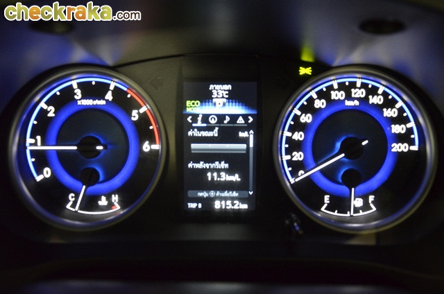 ด้านหลังปรับให้ดูมีมิติมากขึ้นและใช้งานสะดวก ภายในโดยรวมดูทันสมัยและอเนกประสงค์สมมาตรฐานรถยุคใหม่ วัสดุหุ้มเบาะเป็นหนังผสมสังเคราะห์สีน้ำตาล ด้านคอนโซลใช้โทนดำแทรกด้วยวัสดุสีเงินและโครเมียมช่วยให้ดูหรูขึ้น ส่วนอุปกรณ์ต่างๆ ในรุ่นนี้มีครบครัน เช่น ระบบเครื่องเสียงพร้อมเนวิเกเตอร์ผ่านหน้าจอสัมผัสขนาด 7 นิ้ว เท่าที่ทราบระบบเครื่องเสียงได้ผ่านการพัฒนาใหม่ให้เสียงและมิติเหมาะสมกับเพลงไทยมากขึ้น โดยคำนึงถึงขนาดภายในห้องโดยสารด้วย ส่วนพวงมาลัยเป็นแบบมัลติฟังก์ชัน ทรงทันสมัยและหุ้มหนังแท้ มีขนาดพอมือให้ความกระชับดี ส่วนเบาะด้านหลังเย็นหายห่วงด้วยช่องปรับแอร์แยกเฉพาะตรงกลาง ช่วยได้มากเวลาเดินทางกลางวันแล้วเจอรถติด ส่วนจุดที่น่าปรับปรุงสำหรับผู้เขียนคิดว่าเป็นวัสดุบุหลังคาด้านใน น่าใช้เกรดดีกว่านี้เช่น ผ้านุ่ม