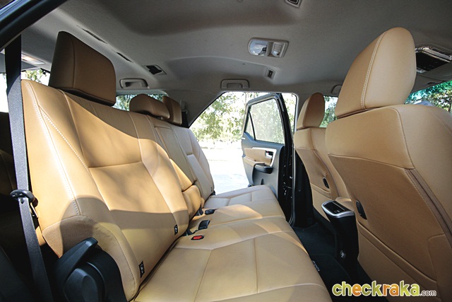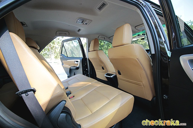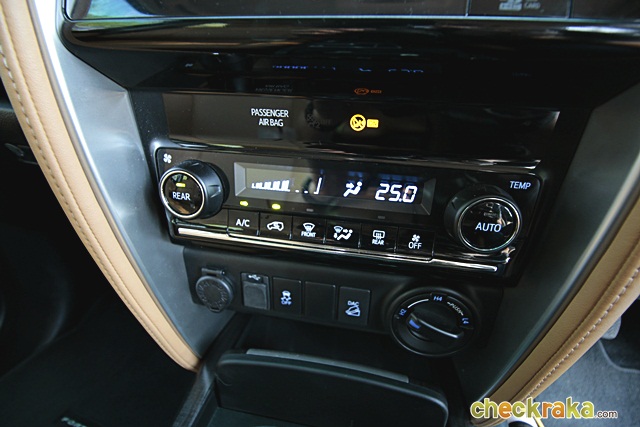 เมื่อเข้ามาในรถก็ต้องดูก่อนเลยว่าแอร์เย็นไหม สำหรับในฟอร์จูนเนอร์ นอกจากแอร์ด้านหน้าแล้ว ก็มีช่องแอร์ผู้โดยสารตอนกลางและตอนหลังเพิ่มด้วย เย็นสบายรอบคันชัวร์! และสามารถเปิด-ปิดลมแอร์ชุดหลังได้ด้วยปุ่มควบคุมด้านบนเพดานของที่นั่งแถว 2 สะดวกไปอีกขั้น ความสว่างของไฟภายในรถใช้หลอดแอลอีดีจึงสว่างชัดเจน มีเพียงไฟเก๋งตอนท้ายสุดเท่านั้นที่ใช้หลอดไส้สีส้มๆ