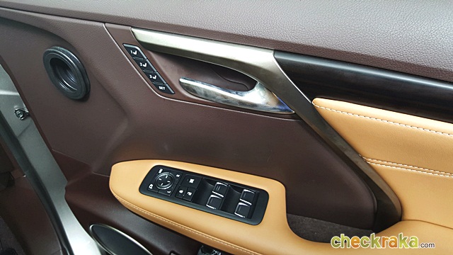 Lexus RX 200t Premium - ภายในใช้โทนสีดูเป็นผู้ใหญ่อบอุ่น ภายในใช้โทนสีน้ำตาลเข้มสลับอ่อน คอนโซลหน้าตกแต่งวัสดุโครเมียมเพิ่มความหรูหรา มาตรวัดเรียบง่ายเห็นชัดเจน พร้อมจอแสดงผลตรงกลางสั่งงานด้วยปุ่มควบคุมบนพวงมาลัยด้านนิ้วโป้งขวา