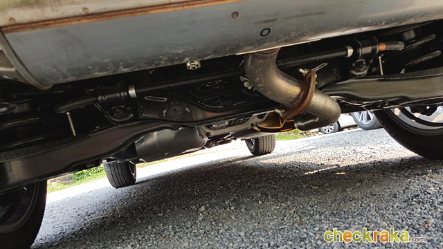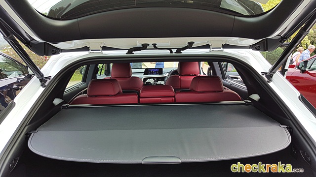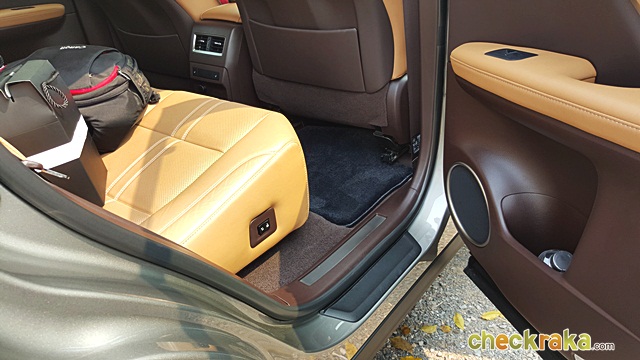 Lexus RX 200t F-Sport - ส่องช่วงล่างด้านหลังเห็นชุดเฟืองท้ายขับเคลื่อน 4 ล้อแน่นอน ภายในเป็นรูปทรงเดียวกับรุ่นย่อยอื่นๆ เพิ่มการตกแต่งโทนสีดำ-แดง-เทา ให้ความรู้สึกหนักไปทางสปอร์ตมากขึ้น พวงมาลัยหนังแท้สีดำเย็บด้ายแดง ได้ฟีลลิ่งรถแข่งนิดๆ เบาะคู่หน้าทรงบักเก็ตซีทมากขึ้น กระชับ ขนาดเล็กพอดีลำตัว แต่คงความนุ่มสบายเหมือนเดิม พร้อมปรับไฟฟ้าและหน่วยความจำ 3 ระดับ เบาะตอนหลังปรับไฟฟ้าและสั่งพับไฟฟ้าได้เหมือนรุ่น Premium แป้นเหยียบตกแต่งด้วยอลูมิเนียม แผงคอนโซลกลางและประตูใช้วัสดุสีโครเมี่ยมตัดสลับกับหนังแท้ ให้อารมณ์ยุโรปมากขึ้น