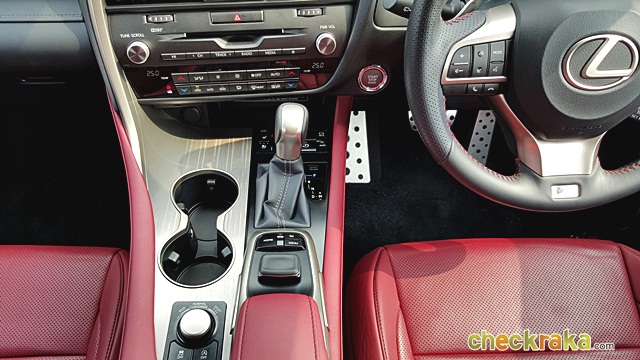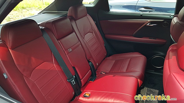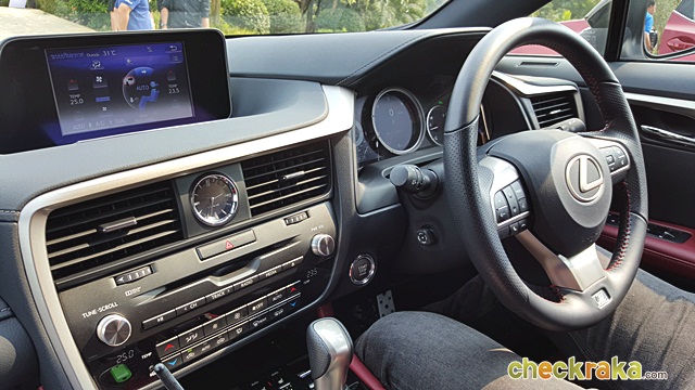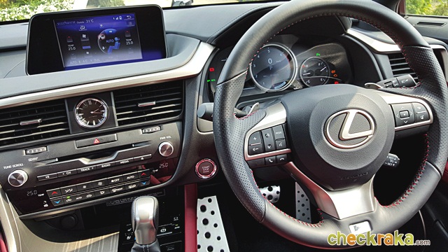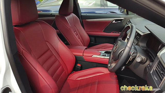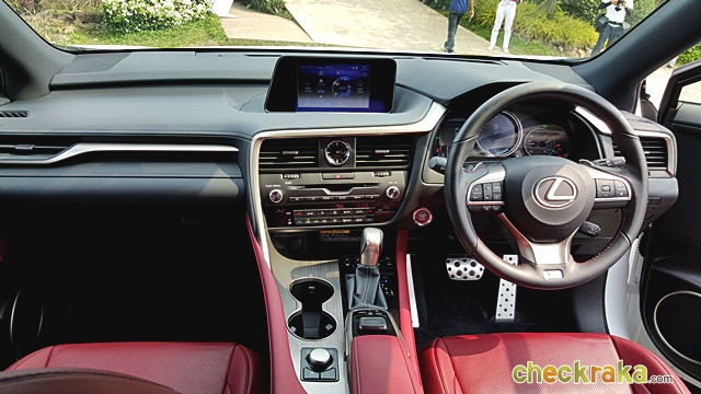 Lexus RX 200t F-Sport ส่วนใน Lexus RX 200t F-Sport ในด้านพละกำลังอาจดูเหมือนจะดร็อปลงมาเล็กน้อยเนื่องจากต้องเป็นระบบขับเคลื่อน 4 ล้อ ซึ่งเมื่อลองขับจริงๆ กลับไม่รู้สึกถึงความแตกต่างใดๆ เครื่องยนต์ให้อัตราเร่งที่ดีเหมือนรุ่นขับเคลื่อน 2 ล้อหน้า แต่ให้ความรู้สึกพิเศษและแตกต่างมาก ด้วยการตกแต่งภายในสีแดงสดในความสปอร์ตเต็มอารมณ์