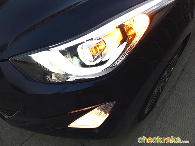 Hyundai Elantra Sport 1.8 GLS NAVI รูปทรงอันเป็นเอกลักษณ์ชัดเจนเฉพาะตัว มีขนาดมิติรถยาว 4,550 มิลลิเมตร กว้าง 1,775 มิลลิเมตร สูง 1,445 มิลลิเมตร ระยะฐานล้อ 2,700 มิลลิเมตร ไฟหน้าโปรเจคเตอร์แบบ HID ซีนอนนั่นเอง สว่างชัดคมใสเห็นทั่วทั้งถนนในเวลากลางคืน ไฟหรี่แบบเส้นสีขาวในโคมเดียวกัน กันชนหน้าขนาดใหญ่และช่องดักลมตรงส่วนล่าง พร้อมไฟตัดหมอกคู่หน้าเพิ่มวิสัยทัศน์ยามค่ำคืนที่มี "หมอกหรือควัน" ได้อย่างดี แต่หากสภาวะอากาศปกติก็ควร "ปิด" ไฟตัดหมอกเพื่อความปลอดภัยแก่ผู้ขับสวนทางมานะครับ