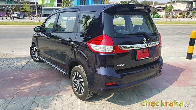ทางด้านไฟท้ายเพิ่มเป็น 2 ชิ้นคือ ส่วนด้านข้างและอีกชิ้นติดบนฝากระโปรงท้าย และแถบโครเมี่ยมปั๊มตัวอักษร "ERTIGA" มาพร้อมกับสปอยเลอร์หลังและไฟเบรก LED ล้อแม็กสีเงินสลับดำลายคล้ายใบพัดขนาด 15 นิ้ว และยาง 185/65R15