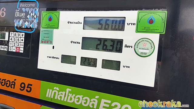 เติมน้ำมันแก๊สโซฮอล์ E20 เป็นเงิน 560 บาท ได้ 26.30 ลิตร เออร์ติกาให้อัตราสิ้นเปลืองที่ 12.8 กิโลเมตรต่อลิตร