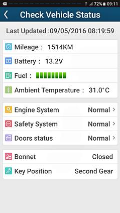 - การตรวจสอบสถานะรถยนต์ โดยแจ้งให้ผู้ขับขี่ทราบสถานะปัจจุบันของรถยนต์ว่าปิดอยู่หรือไม่, แจ้งระดับแบตเตอรี่, ระดับน้ำมันเชื้อเพลิงและอุณหภูมิอากาศภายนอก