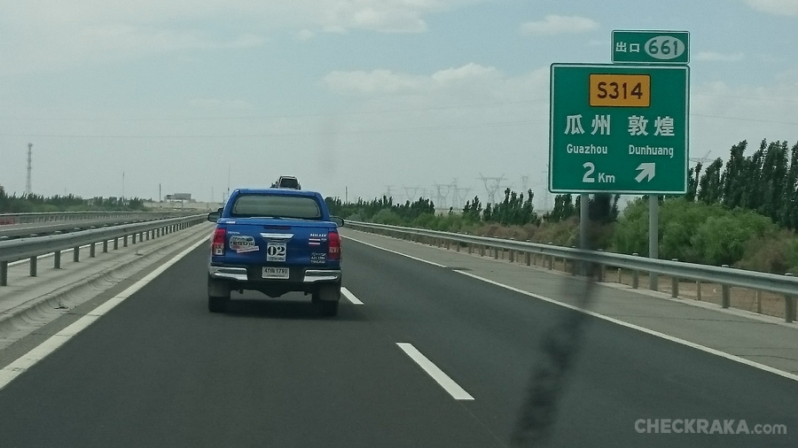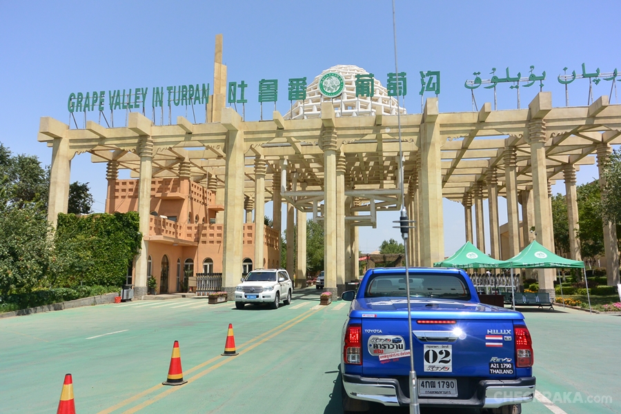 ก่อนออกเดินทางขบวนฯ แวะชม ถ้ำม่อเกาคู หรือ เชียนฝอต้ง (แปลว่า ถ้ำพระพุทธรูปพันธ์องค์) เป็นแหล่งพุทธศิลป์ที่ยิ่งใหญ่สุดของจีน อีกทั้งยังเป็นมรดกโลกด้วย จากนั้นเดินทางต่อสู่เมืองฮามี่หรือโอเอซิสแห่งคูมุล อันเป็นเมืองหลวงเก่าและเป็นหน้าด่านของมณฑลซินเกียง ทัศนียภาพสองข้างทางส่วนใหญ่เป็นทะเลทรายกว้างไกล และมีลมทะเลทรายพัดเข้าข้างเป็นระยะ แต่ช่วงล่างที่ดีของ ไฮลักซ์ รีโว่ ทำให้ควบคุมง่าย และขับด้วยความมั่นใจไปตลอดเส้นทาง เรามาถึงเมืองฮามี่ราวทุ่ม น่าแปลกใจที่ยังสว่างและแดดแรง (เวลาเร็วกว่าเมืองไทย 1 ชม.) ระยะทางจริงวันนี้วิ่งรวม 490 กม. ไฮลักซ์ รีโว่ ทุกคันยังตอบสนองการขับทางไกลต่อเนื่องได้สบายๆ เมื่อถึงที่พัก สมาชิกบางส่วนนั่งสนทนาหน้าโรงแรมกันถึง 3 ทุ่ม บรรยากาศก็ยังสว่างด้วยแสงอาทิตย์อยู่นับว่าเป็นกลางวันที่ยาวนานจริงๆ
