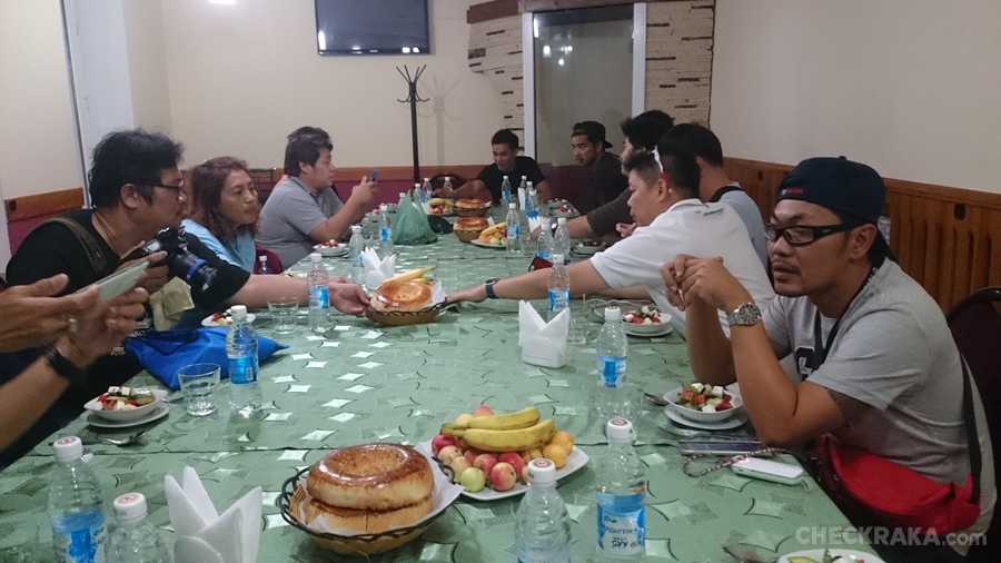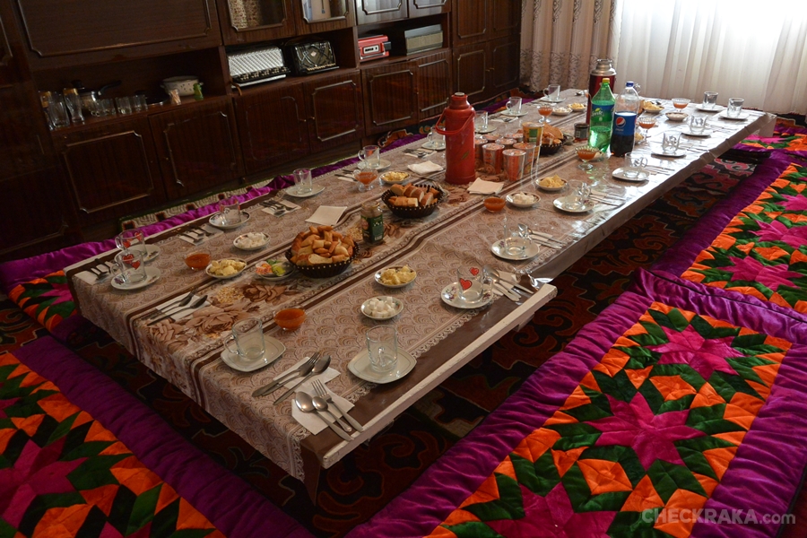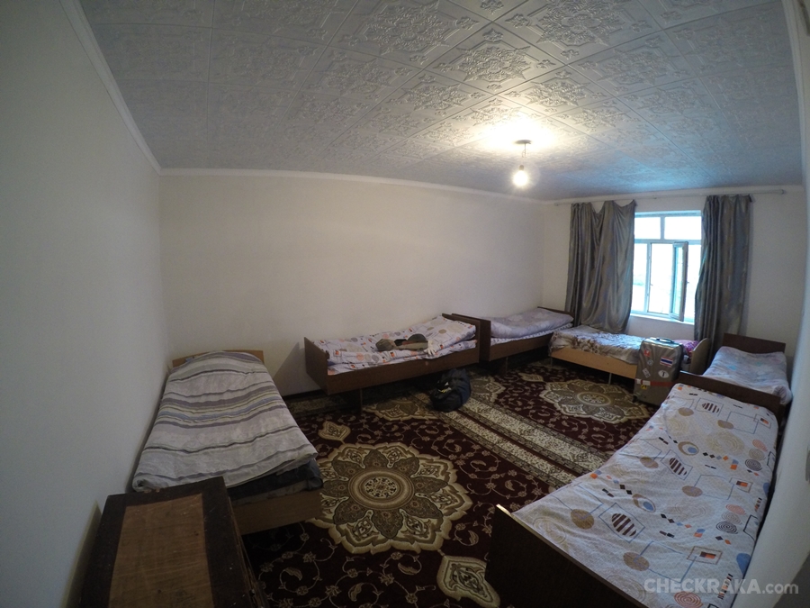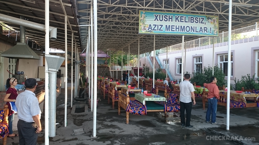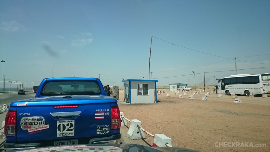 ขั้นตอนการตรวจนั้นเข้มข้นมาก แม้กระทั้งแลปท็อป กล้อง สมาร์ทโฟนก็ต้องให้เปิดตรวจดูภาพที่ถ่ายมา ชุดแรกที่ผ่านข้ามเข้าฝั่งอุซเบกิสถานไปได้ มีแค่ 8 คน รวมผู้เขียน ส่วนทีมที่เหลือและตัวรถเจอการตรวจสอบต่อเนื่อง สแกนกันทั้งคัน ละเอียดอย่างที่ไม่เคยเจอมาก่อน ผู้เขียนกับเพื่อนอีก 7 คน เดินออกไปรอที่ร้านอาหารใกล้ด่าน พร้อมสั่งอาหารประทังความหิวกัน เพราะล่วงเข้าบ่ายสองแล้ว แน่นอนว่าเราสื่อสารกันไม่รู้เรื่อง ภาษาอังกฤษใช้ไม่ได้กับคนท้องถิ่นแถวนี้ ไกด์ท้องถิ่นก็ยังคอยแก้สถานการณ์ให้กับคนที่เหลืออยู่ในด่าน ก็อาศัยภาษามือนี่ล่ะ เอาตัวรอดได้อาหารครบคน ค่าอาหารดูแพงกว่าความเป็นจริง จ่ายเป็นยูเอสดอลล่าร์ หลังอิ่มครบก็ได้แต่นอนรถ เราไม่มีทางรู้เลยว่าพวกที่เหลือจะได้ผ่านออกมากี่โมง หรือไม่ได้ผ่าน ! 6 โมงครึ่งใจคอที่รอกันเริ่มไม่ดี รู้แต่พระอาทิตย์สว่างนานก็ยังเป็นเรื่องดี แต่ไม่นานก็มีสัญญานจากฝั่งโน้น รถคันแรกโผล่หัวออกมาให้เห็น เหมือนด่านใกล้ปิดรถและคนที่เหลือทยอยผ่านกันออกมาได้หมด นับเป็นประสบการณ์ที่ต้องจดจำ แต่ต่อจากข้ามแดนมาได้ก็มีโจทย์ใหม่ เราต้องไปหาที่พักทานอาหารเย็นและเติมน้ำมัน