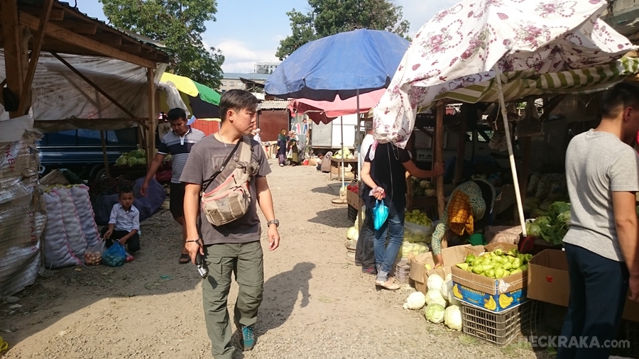 ขบวนคาราวานฯ มีเวลาในซารี แทช เพียงแค่ค่ำคืนเดียวน่าเสียดายจริงๆ เพราะเป็นพื้นที่สวยงามและควรใช้ชีวิตอยู่สักพัก ทำให้ต้องอำลาซารี่ แทชไปอย่างอาลัย เพื่อมุ่งหน้าไปเมืองออช หน้าด่านที่จะต่อไปยังประเทศอุสเบกีซสถาน อย่างไรก็ตามช่วงสายที่ขับออกมาจากหมู่บ้านเราก็ได้ขับไฮลักซ์ รีโว่ ไปหาโลเคชั่นสวยๆ บันทึกภาพกันก่อน หลังจากนั้นก็เป็นการขับลงเขา ซึ่งนั่นหมายถึง ซารี แทช อยู่สูงกว่าพื้นราบทั่วไปจริงๆ ถนนแบบลาดยางสวนเลน มีไม้ปักบอกขอบถนนเป็นระยะ ไว้รองรับช่วงหิมะตก แต่รถวิ่งกันน้อยมาก ส่วนบรรยากาศสองข้างทางเป็นภูเขาทับซ้อนกัน เห็นกระโจมที่พักหรือที่เรียกว่าโยค เป็นระยะ น่าสนใจใช้บริการไม่น้อยถ้ามากันแบบแอดเวนเจอร์ อากาศที่หนาวเย็น ฝนตกพรำๆ เริ่มอุ่นขึ้นตามระดับความสูงที่ลดลง ขบวนฯ ไฮลักซ์ รีโว่ เพิ่งมาเจอเส้นทางลื่นเปียกก็วันนี้ แม้เป็นทางลงเขาก็ขับได้อย่างมั่นใจ จนมาถึงทางราบและเข้าสู่เมืองออช บรรยากาศเมืองช่างต่างกับที่ผ่านมาจริงๆ ดูเงียบเหงาเพราะเป็นช่วงถือศีลอด อาหารช่วงกลางวันหาทานยาก ยังดีมีโรงแรมเปิดให้บริการ หลังเข้าพักเช็คอินโรงแรมเรียบร้อย สมาชิกก็อาศัยเหมาะรถบัสออกไปชมเมือง มัสยิด และตลาดนัด ดูวิถีชีวิตที่แตกต่าง